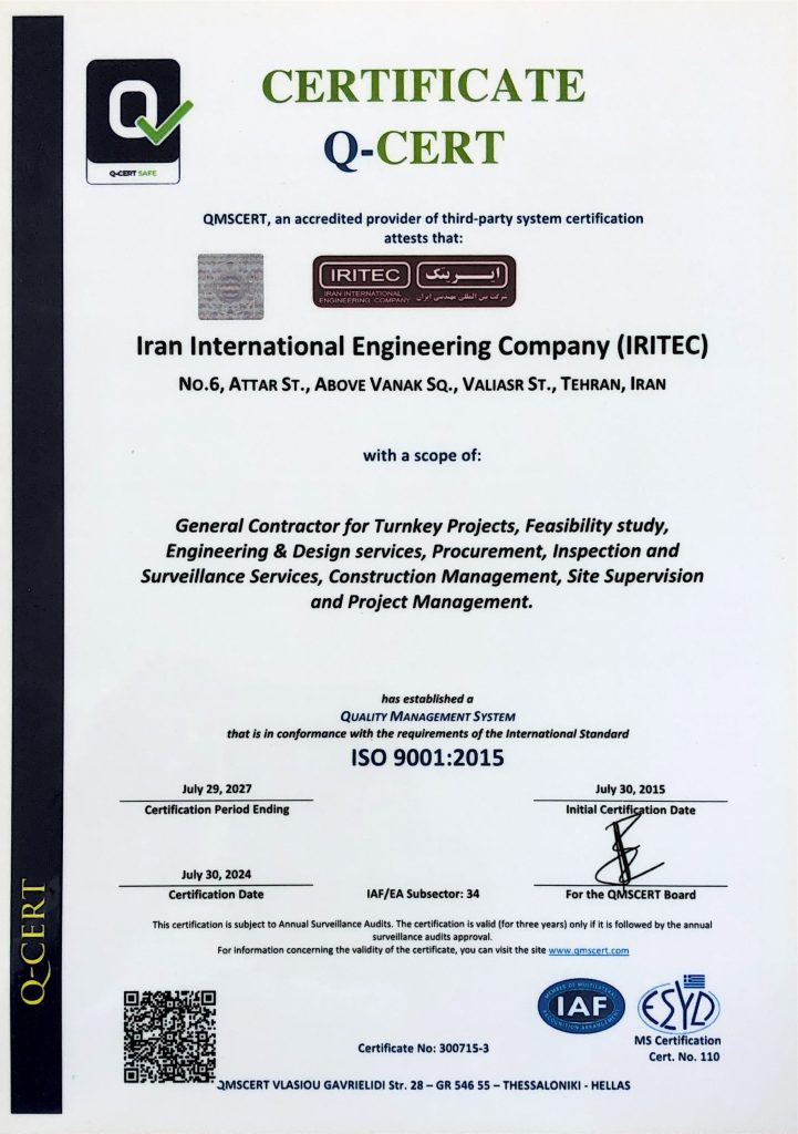 - دریافت گواهی صلاحیت اجرای پروژههای EPC از سازمان برنامه و بودجه کشور